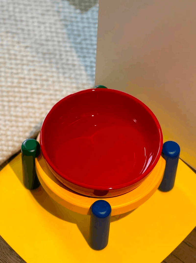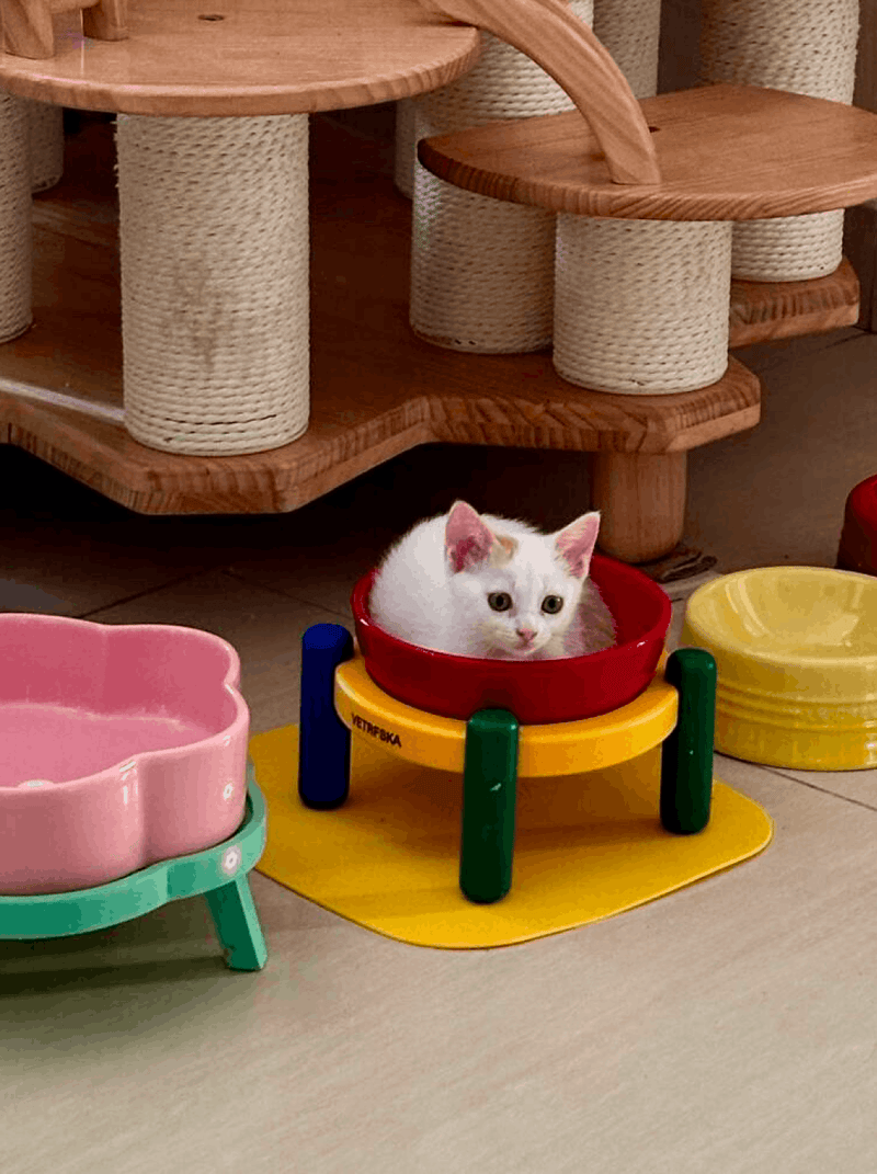 • Chic and Functional Design. The eye-catching red ceramic bowl, paired with the colorful bamboo stand, infuses your pet's dining space with a vibrant flair while serving practical dining needs.