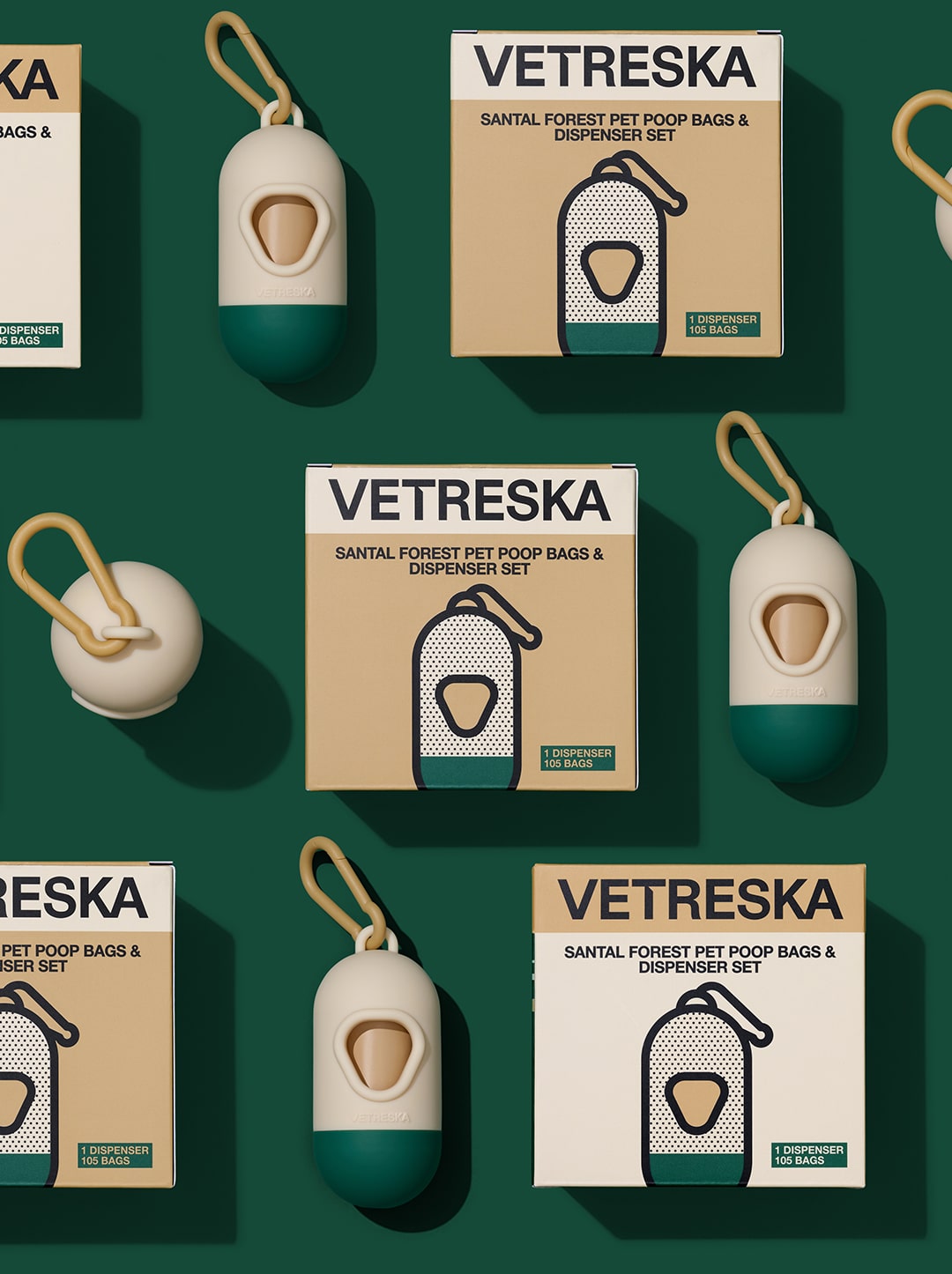 Refined. Responsible. Ready for every walk. The VETRESKA Santal Forest Pet Poop Bags & Dispenser Set (1 Dispenser + 7 Rolls) brings nature’s serenity to your daily routine. Encased in a sleek capsule dispenser colored in Ivory Cream, Soft Gold, and Santal Green, this stylish essential is designed for effortless elegance on the go. The rubber soft-touch finish gives each interaction a luxurious feel, while the dispenser’s clip attaches seamlessly to leashes or totes. Each of the 105 leak-proof bags is biodegradable, strong, and delicately scented with a warm blend of sandalwood and almond, transforming clean-ups into an experience of calm. A must-have for the style-conscious and eco-aware.